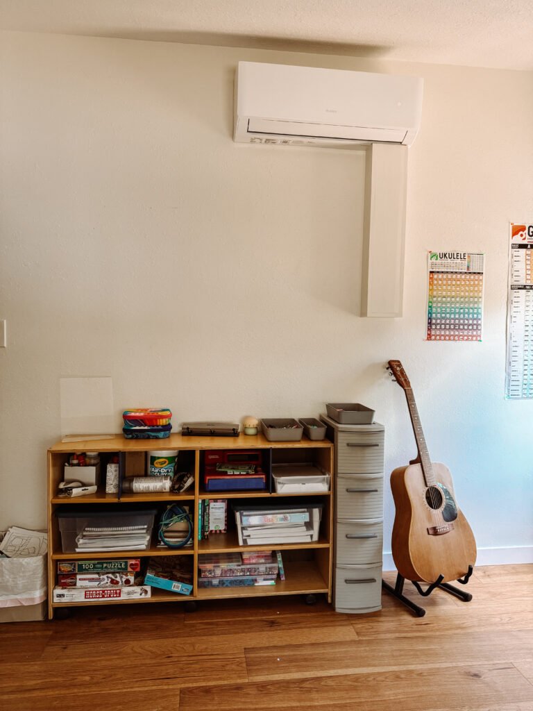 Check out local online marketplaces like Facebook Marketplace for affordable finds. We snagged an organizer for just $40, which helps keep our materials tidy and accessible without spending a lot.